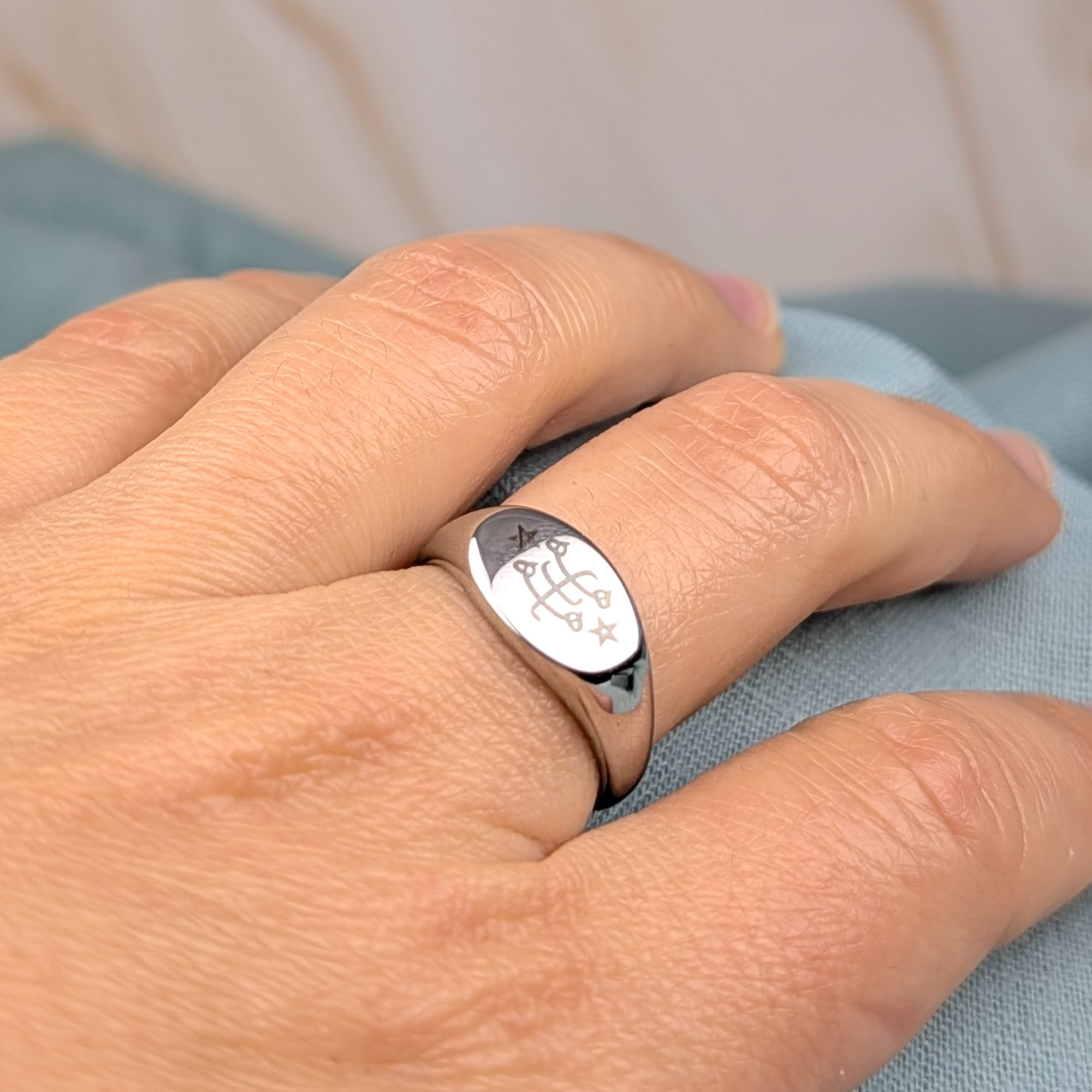 Intone oval Bahá'í Ringstone symbol signet stainless steel ring