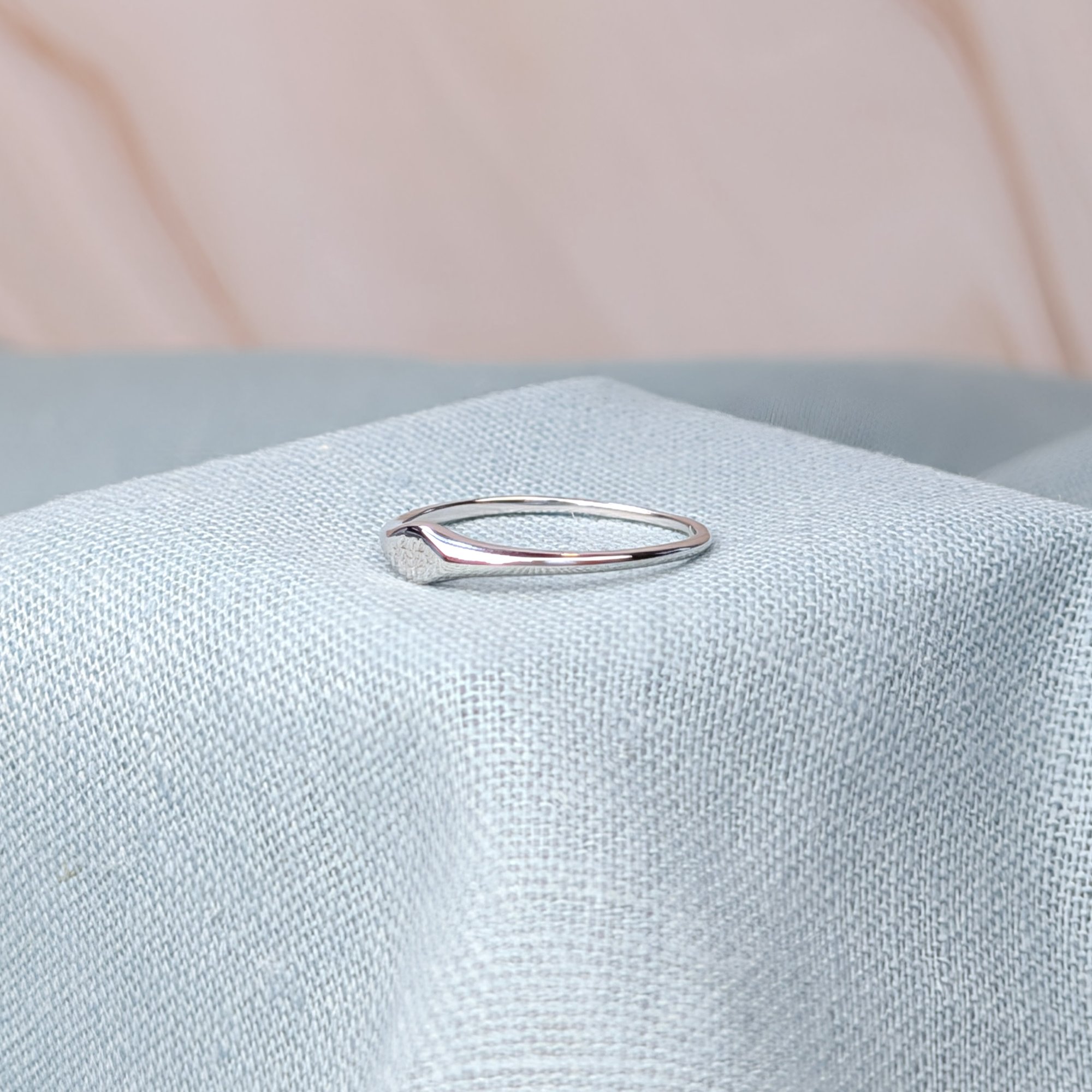 This is a dainty and very delicate take on the classic signet ring. It features an elongated front, with the Ringstone symbol engraved with laser. The band is thin and the ring lightweight and comfortable for every day wear. Made of sterling silver.